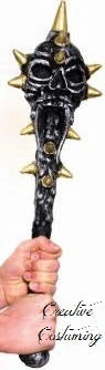 Antique silver skull with gold spike accent. High Density Soft Foam Latex – Great for LARP. Manufacture claims this is 29″, we measure 24″.