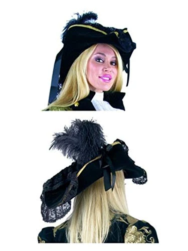 Captain an adventure this Halloween in this Lacy Pirate Hat. The black hat is fashioned like a traditional pirate’s hat and features a gold trim, black bow and matching plume. You’ll set sail in style when you pair this hat with your pirate look.