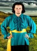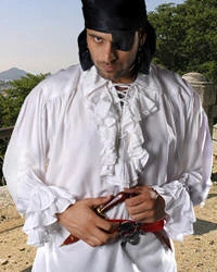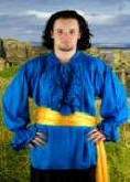 Includes: Thick & rich Viscose Rayon fabric shirt with drop shoulders (for renaissance look), double ruffle & eyelets in front & double ruffle at the sleeves for added grace.