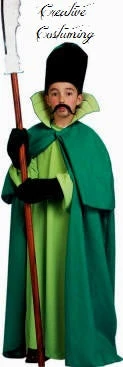 Includes: Dark green over cape, light green robe/under drape, green faux fur hat &