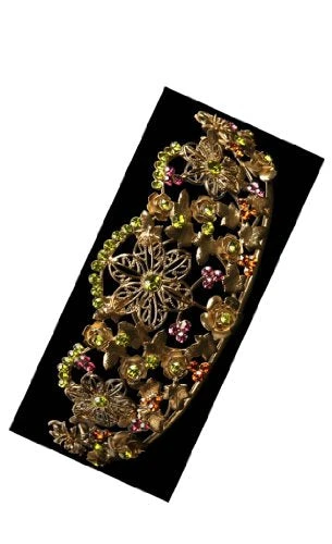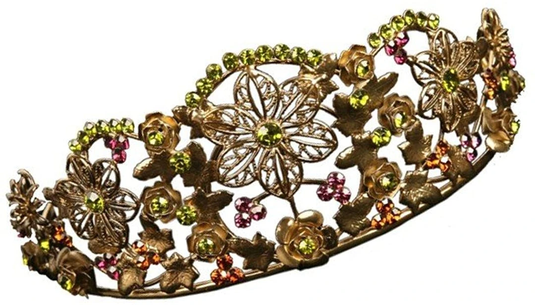 Very Nice Gold Flower Leaf Tiara / Plated Brass Wire and Rhinestones.