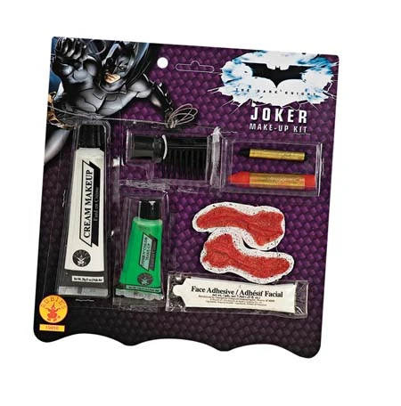 Includes: One tube water washable white cream makeup, one tube water washable green hair color with applicator comb, one small black makeup stick, one large red makeup stick, mouth scars & face adhesive. Color: As Shown Â