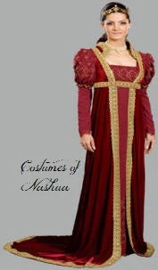 Includes: Includes: Beautiful & luxuirious sleeveless full length cape with Empire waist and embellished with wide ornate gold mesh trim.