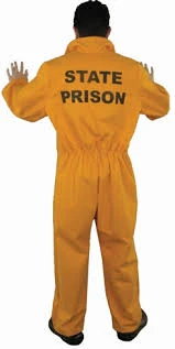 Includes: Orange jumpsuit with “State Prison” printed on the back.