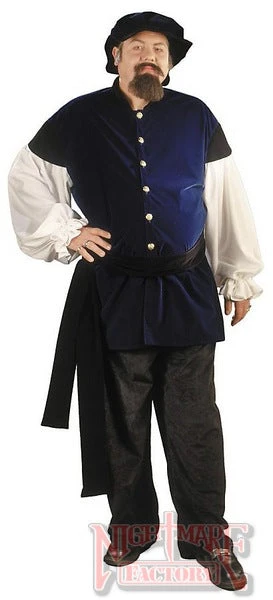 Includes: Two-tone jacket with attached contrasting sleeves, hat, pants & belt sash.