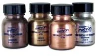 Ultra-fine powders are perfect for dramatic designs and fun characters. May be applied dry with fingertips or a brush to highlight. Combine with Mixing Liquid (below) to form a water based metallic liquid makeup for more coverage.