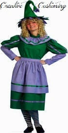 Includes: Emerald Green Dress w/Lavender Collar & Sleeves, attached Lavender Apron, matching Point Hat w/flower & black & white striped socks.