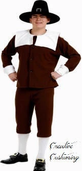 Includes: Brown Shirt w/attached white collar & cuffs, Brown Pants & Pilgrim Hat.Â