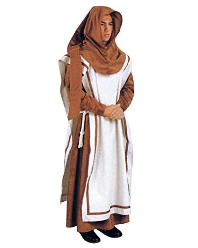 Includes: Brown suede cloth gown & hood, Rough cotton over Tunic w/brown trim & rope belt.