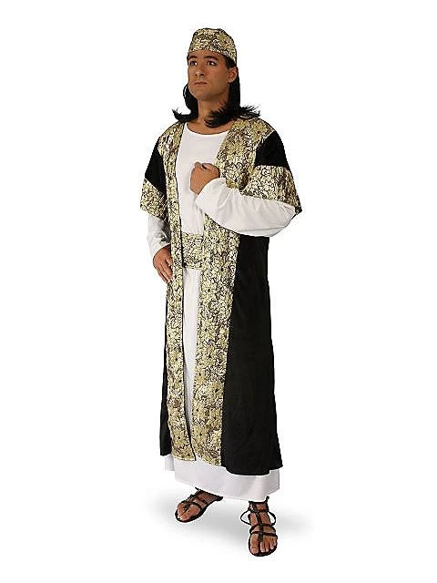 Includes: Luxurious white long sleeved gown, lack velour overrobe w/brocade facing, matching brocade belt & hat.Â