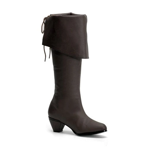 Leather w/fabric lining & padded foot insert. Lace up back with 6 eyelets. Toe is somewhat pointed & turns up slightly. Rubber ribbed soles w/ 2.5″ tapered heel.