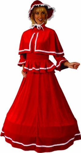 Includes: 5 piece luxurious steam velour velveteen skirt accented w/ribbon trim, matching peplum belt, caplet, bonnet & blouse.Â