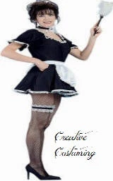 Includes: Black Satin Dress accented with Apron & Headpiece.