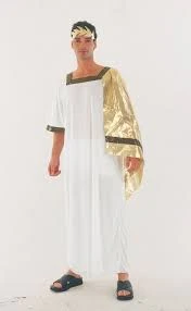 Includes: White Toga Gown and Gold Drape