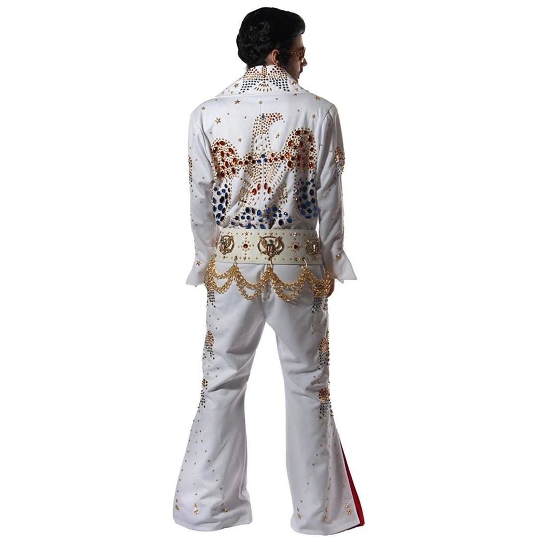 If you enjoy Elvis or belong to a theater group and need a great costume that can withstand excessive wearing then this costume is just for you. Buy with confidence knowing your play will look incredible in this Elvis Jumpsuit theater costume. Includes Jumpsuit and Cape. Shoes, Glasses, Boots, and Sash not included.