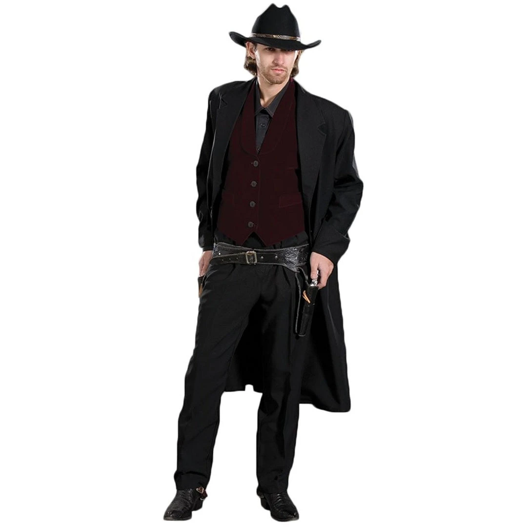 Buy with confidence knowing you will look incredible in this Western Gunslinger Cowboy Theatrical costume of Superb quality and craftsmanship. All returns are subject to restocking/administrative fees. If you have any doubts about sizing, PLEASE Email our expert staff to assist you with measurements before you order.