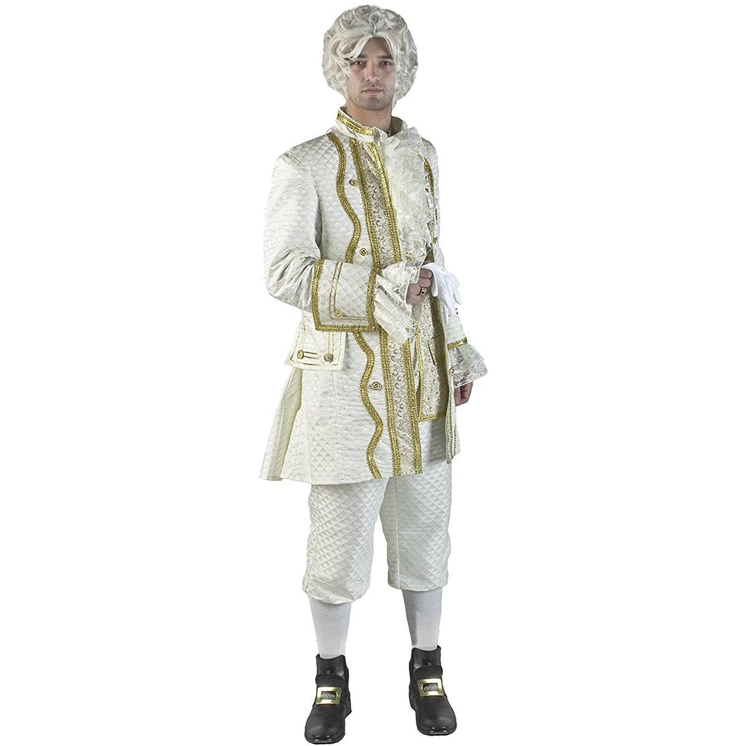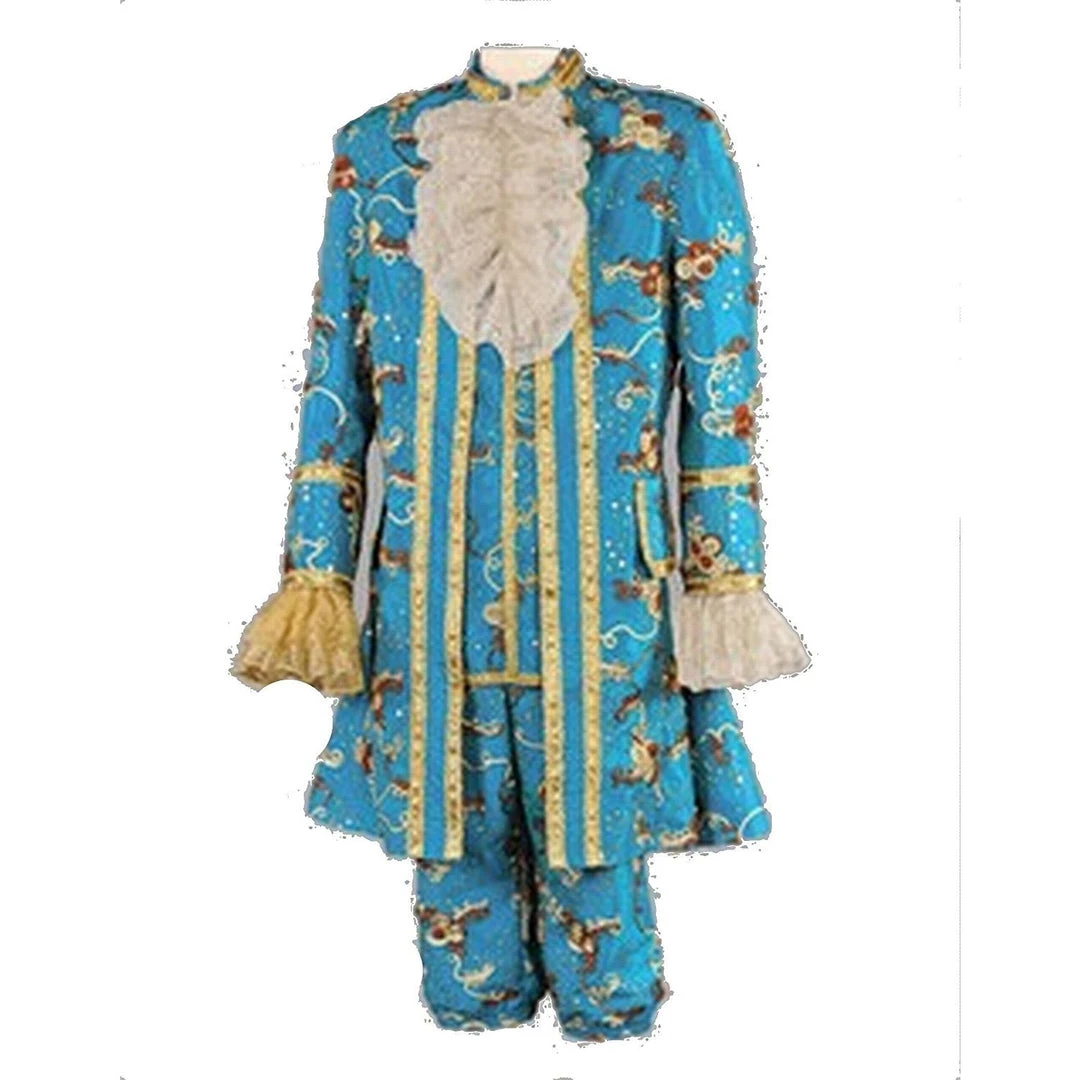 - Accented with matching jabot, cuffs, and vest/shirt front