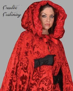 Includes: Beautiful floor length Red Chenille Cape w/attached Hood lined w/Red Lace.