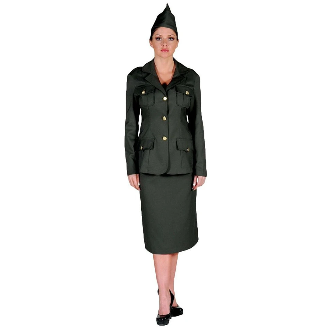 If you enjoy historical reenactments or belong to a theater group and need a great costume that can withstand excessive wearing then this costume is just for you. Buy with confidence knowing your play about WWII will look incredible in this Army Pinup Girl Uniform costume for women.